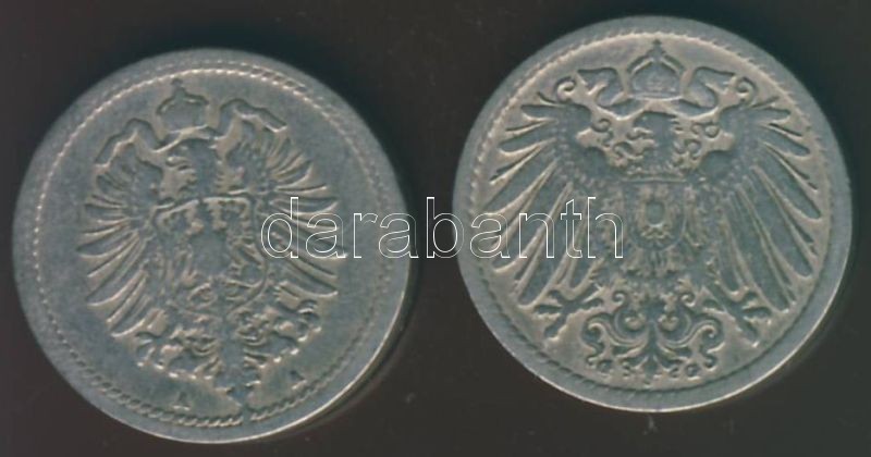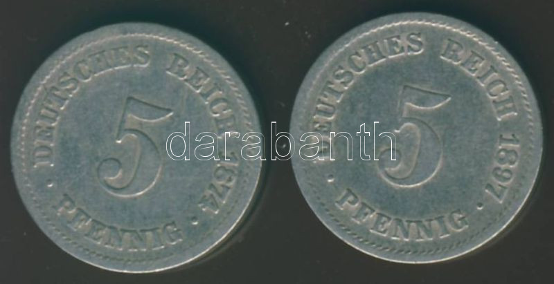 Német Birodalom/Császárság 1874A 5Pf T:3- + 1897G 5Pf T:3 https://www.darabanth.com/de/89-Fernauktion/89.0/Numismatik/~1400/Nemet-BirodalomCsaszarsag-1874A-5Pf-T3--plus-1897G-5Pf-T3~II196327