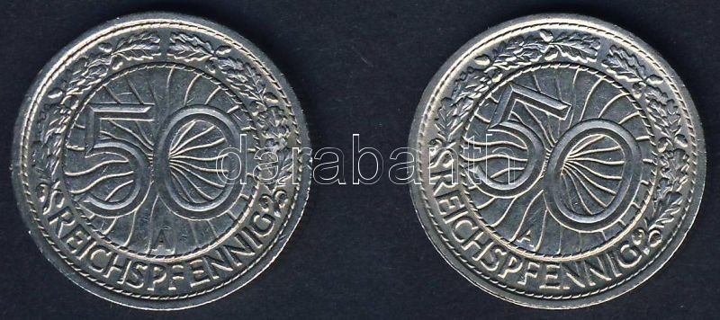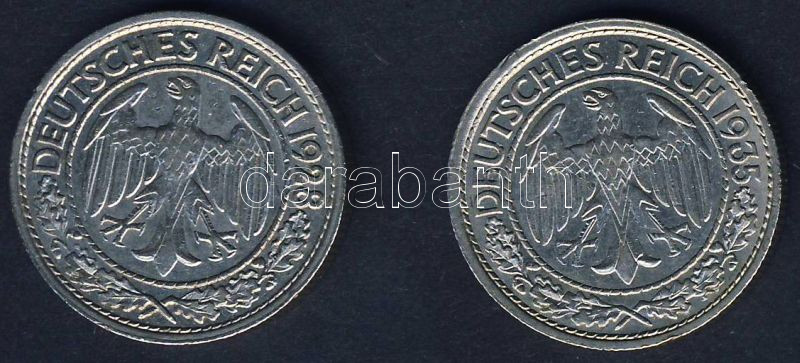 Német Birodalom/Weimari Köztársaság 1928A+1935A 50Pf 2klf évszám T:2,2... https://www.darabanth.com/de/89-Fernauktion/89.0/Numismatik/~1400/Nemet-BirodalomWeimari-Koztarsasag-1928Aplus1935A-50Pf-2klf-evszam-T2-23plus~II194343