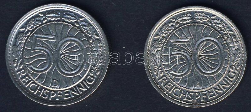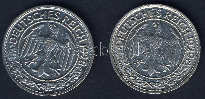 Német Birodalom/Weimari Köztársaság 1928D+1929A 50Pf klf évszám T:3 https://www.darabanth.com/de/89-Fernauktion/89.0/Numismatik/~1400/Nemet-BirodalomWeimari-Koztarsasag-1928Dplus1929A-50Pf-klf-evszam-T3~II194486