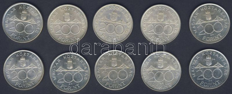 1993. 200Ft Ag "MNB" (7x) + 1994. 200Ft Ag "Deák" (3x) összesen 10db T... https://www.darabanth.com/de/89-Fernauktion/89.0/Numismatik/~1403/1993-200Ft-Ag-MNB-7x-plus-1994-200Ft-Ag-Deak-3x-osszesen-10db-TBU-2~II193077