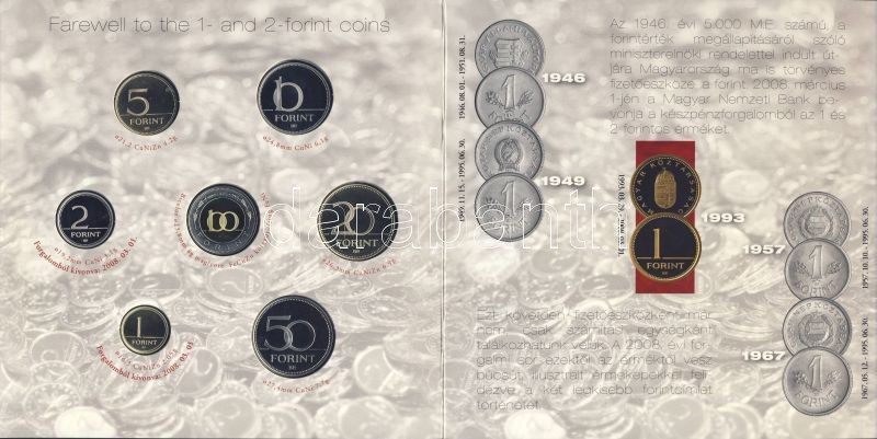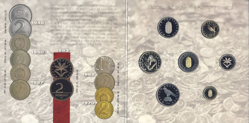 2008. 1Ft-100Ft 7 klf db "Búcsú az egy, -és kétforintosoktól" díszes s... https://www.darabanth.com/de/89-Fernauktion/89.0/Numismatik/~1403/2008-1Ft-100Ft-7-klf-db-Bucsu-az-egy--es-ketforintosoktol-diszes-szettben-TPP-csak-4000db~II193081