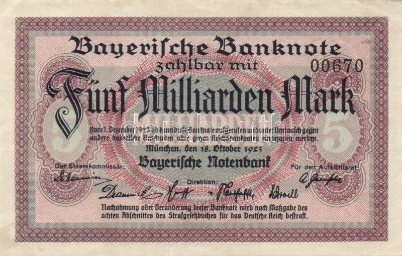 Német 3. Birodalom /Weimari Köztársaság/Bajorország 1923. 5000000000M ... https://www.darabanth.com/de/89-Fernauktion/89.0/Numismatik/~1404/Nemet-3-Birodalom-Weimari-KoztarsasagBajororszag-1923-5000000000M-TIIplus~II196212
