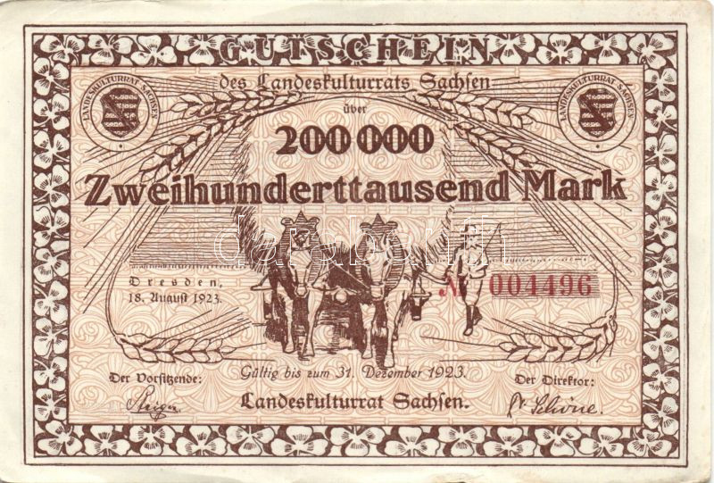 Német 3. Birodalom /Weimari Köztársaság/Szászország 1923. 200000M T:II... https://www.darabanth.com/de/89-Fernauktion/89.0/Numismatik/~1404/Nemet-3-Birodalom-Weimari-KoztarsasagSzaszorszag-1923-200000M-TIIplus~II196213
