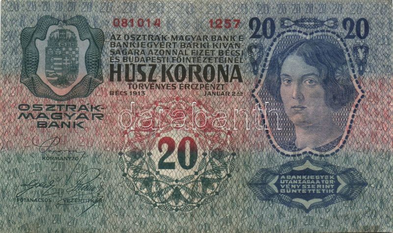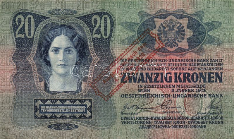1913. 20K piros "Ausgegeben nach dem 4. Oktober 1920" fny-sal T:II https://www.darabanth.com/de/89-Fernauktion/89.0/Numismatik/~1406/1913-20K-piros-Ausgegeben-nach-dem-4-Oktober-1920-fny-sal-TII~II193064
