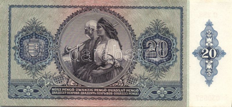 1941. 20P (2x) egymásutáni sorszámmal T:I https://www.darabanth.com/de/89-Fernauktion/89.0/Numismatik/~1406/1941-20P-2x-egymasutani-sorszammal-TI~II192843