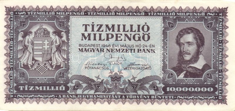 1946. 100.000BP (1x) + 1000.000MP (2x) + 10.000.000MP (2x) Összesen 5d... https://www.darabanth.com/de/89-Fernauktion/89.0/Numismatik/~1406/1946-100000BP-1x-plus-1000000MP-2x-plus-10000000MP-2x-Osszesen-5db-TIIplus-Csak-egyszer-hajtva-~II196352