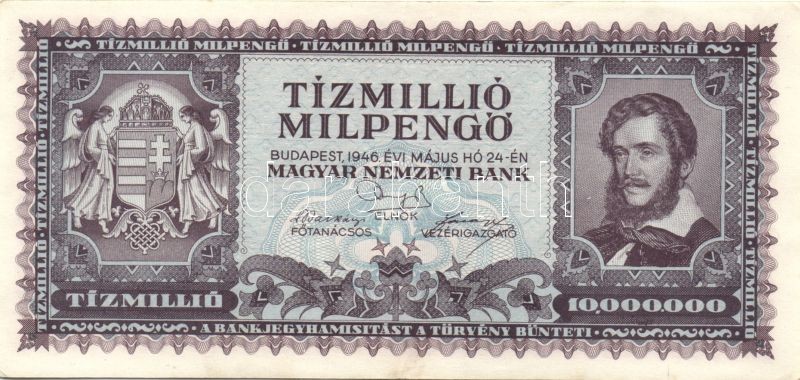 Beschreibung: 1946. 100.000BP (1x) + 1000.000MP (2x) + 10.000.000MP (2x) Összesen 5db! T:II+ Csak egyszer hajtva, törve nem!