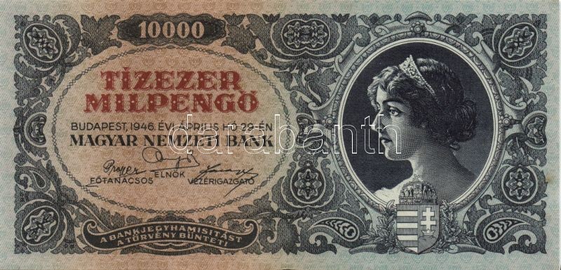 1946. 10.000MP (7x) egymásutáni, ill. kisugrású sorszámokkal T:II+ Csa... https://www.darabanth.com/de/89-Fernauktion/89.0/Numismatik/~1406/1946-10000MP-7x-egymasutani-ill-kisugrasu-sorszamokkal-TIIplus-Csak-egyszer-hajtva-torve-~II196351