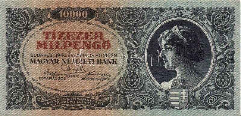 Beschreibung: 1946. 10.000MP (7x) egymásutáni, ill. kisugrású sorszámokkal T:II+ Csak egyszer hajtva, törve nem!
