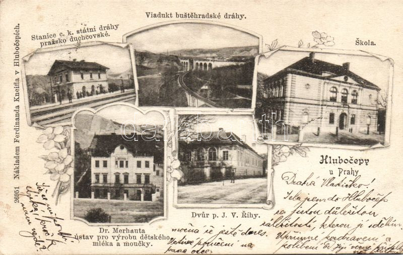 Hlubocepy with railway-station https://www.darabanth.com/de/9-Gross-Auktion/9.1/Ansichtskarten-Ausland/~2291/Hlubocepy-with-railway-station~II250844
