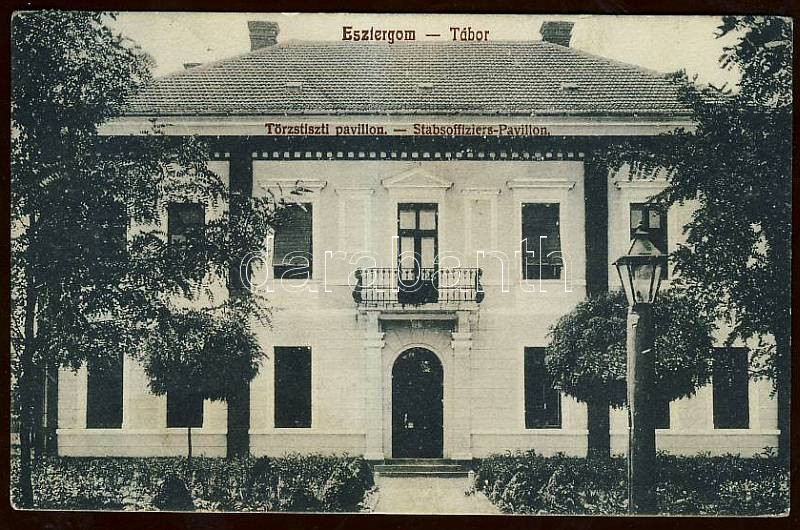 Esztergom Katonai tábor törzstiszti pavilon https://www.darabanth.com/de/9-Gross-Auktion/9.1/Ansichtskarten-Ungarn/~2270/Esztergom-Katonai-tabor-torzstiszti-pavilon~II251847