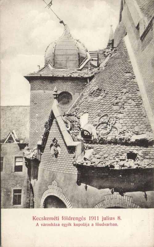 Kecskemét Városháza földrengés után https://www.darabanth.com/de/9-Gross-Auktion/9.1/Ansichtskarten-Ungarn/~2270/Kecskemet-Varoshaza-foldrenges-utan~II244946