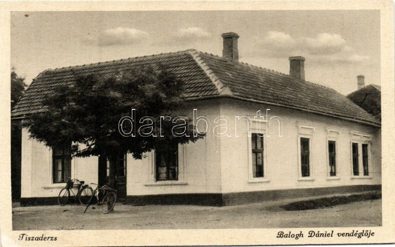 Tiszaderzs Balogh Dániel vendéglője https://www.darabanth.com/de/9-Gross-Auktion/9.1/Ansichtskarten-Ungarn/~2270/Tiszaderzs-Balogh-Daniel-vendegloje~II243670