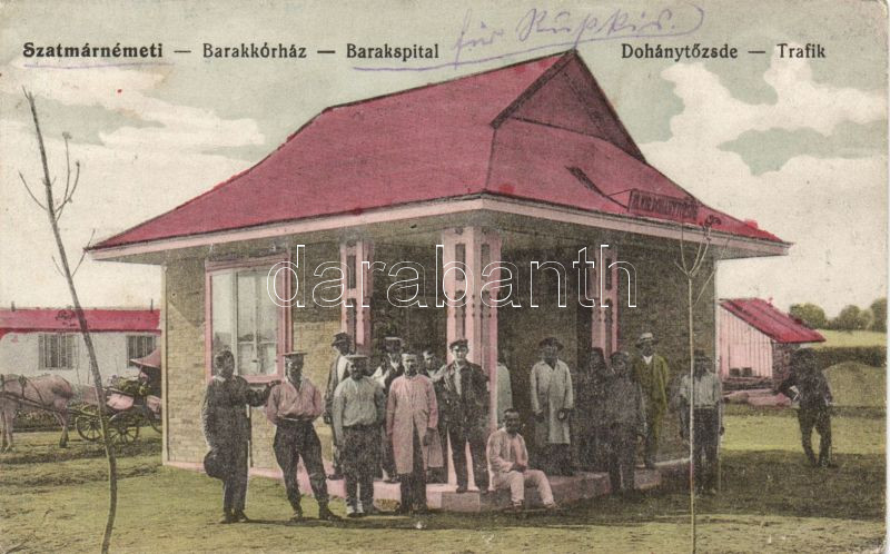 Szatmárnémeti Military hospital tobacco-shop https://www.darabanth.com/de/9-Gross-Auktion/9.1/Ansichtskarten-Ungarn/~2272/Szatmarnemeti-Military-hospital-tobacco-shop~II246397