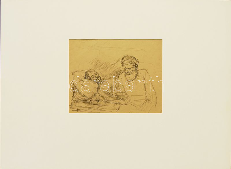 Beschreibung: 1943 Ék Sándor (1902-1975): Vázlat ceruzarajz (az 1972-es műcsarnoki gyűjteményes kiállítás anyagából) 25x32cm paszpartuban