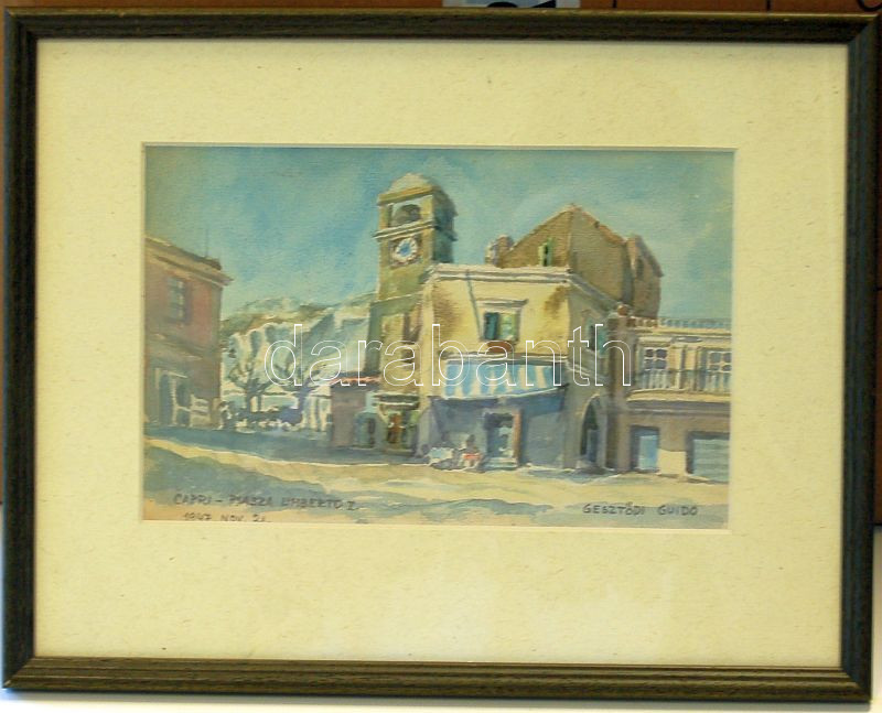 1947 Gesztődi Guidó: Capri Piazza Umberto I.; szignált akvarell keretb... https://www.darabanth.com/de/90-Fernauktion/90.0/Andere-Sammelgebiete/~750/1947-Gesztodi-Guido-Capri-Piazza-Umberto-I-szignalt-akvarell-keretben-37x30cm~II192048