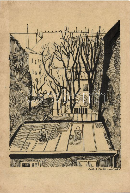 Vaszary Gábor (1892-1985): Házak felett szignált grafika; tus, papír ... https://www.darabanth.com/de/90-Fernauktion/90.0/Andere-Sammelgebiete/~752/Vaszary-Gabor-1892-1985-Hazak-felett-szignalt-grafika-tus-papir-18x26cm~II192297