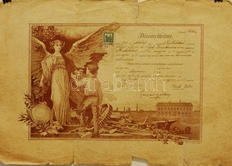 1905 A Kisteleki ipartestület díszes kőmüvestanonci bizonyítványa (ros... https://www.darabanth.com/de/90-Fernauktion/90.0/Andere-Sammelgebiete/~779/1905-A-Kisteleki-ipartestulet-diszes-komuvestanonci-bizonyitvanya-rossz-allapotban~II196939