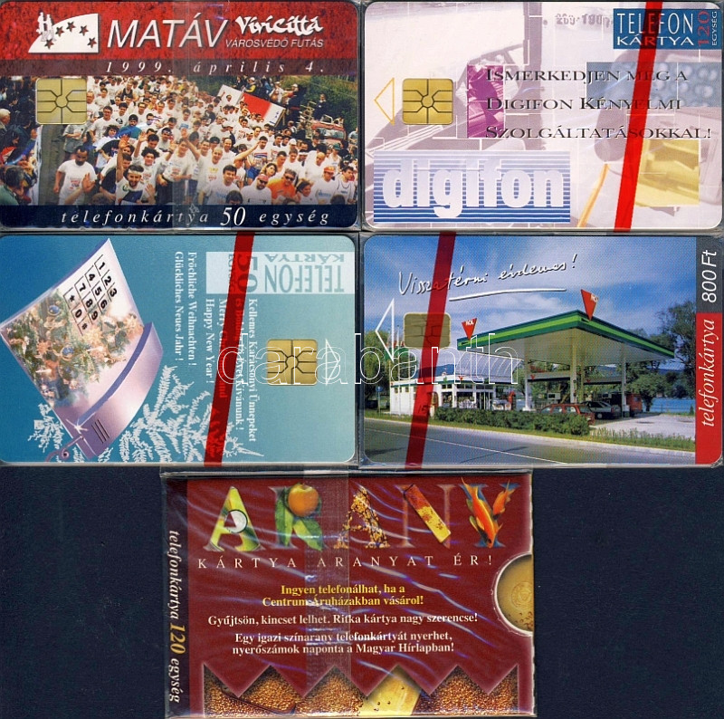 Beschreibung: 5 db használatlan telefonkártya eredeti csomagolásban