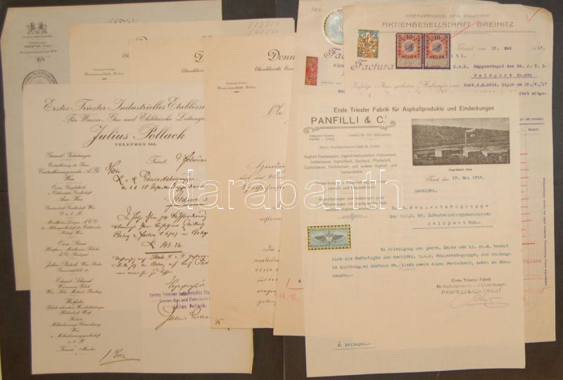Beschreibung: 1889- 1917 9 db számla hadi szállításokról szép katonai pecsétekkel és címkékkel