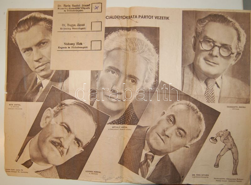 1918-as szavazólap + 1946 Szociáldemokrata választási plakát https://www.darabanth.com/de/90-Fernauktion/90.0/Andere-Sammelgebiete/~785/1918-as-szavazolap-plus-1946-Szocialdemokrata-valasztasi-plakat~II197792