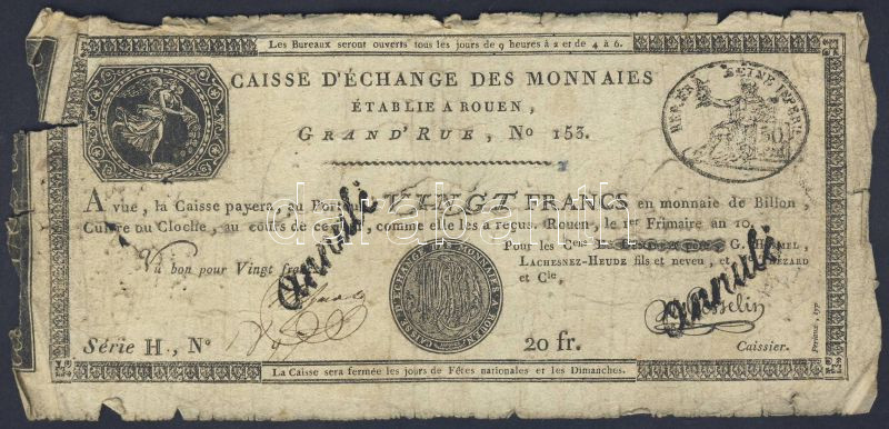 Beschreibung: Franciaország/Rouen 1797-1803. 20Fr T:IV- R!