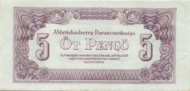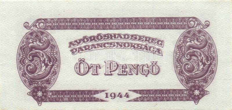 1944. 5P "V.H." erős nyomáselcsúszással T:I https://www.darabanth.com/de/90-Fernauktion/90.0/Numismatik/~200025/1944-5P-VH-eros-nyomaselcsuszassal-TI~II196343