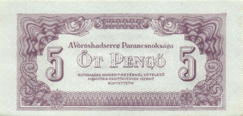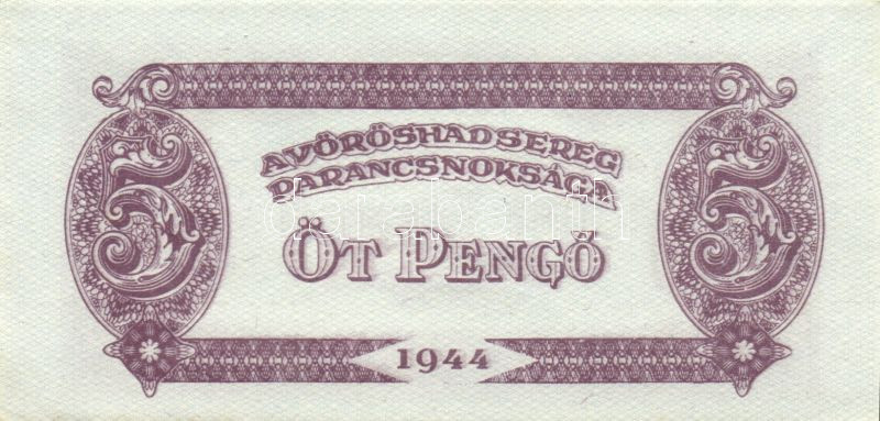 1944. 5P "V.H." erős nyomáselcsúszással T:I https://www.darabanth.com/de/90-Fernauktion/90.0/Numismatik/~200025/1944-5P-VH-eros-nyomaselcsuszassal-TI~II196344