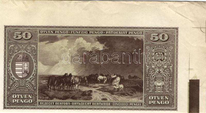 1945. 50P csak hátlapi nyomat jobb sarokívszél illesztőkeresztekkel és... https://www.darabanth.com/de/90-Fernauktion/90.0/Numismatik/~200025/1945-50P-csak-hatlapi-nyomat-jobb-sarokivszel-illesztokeresztekkel-es-szinprobaval-TI~II193105