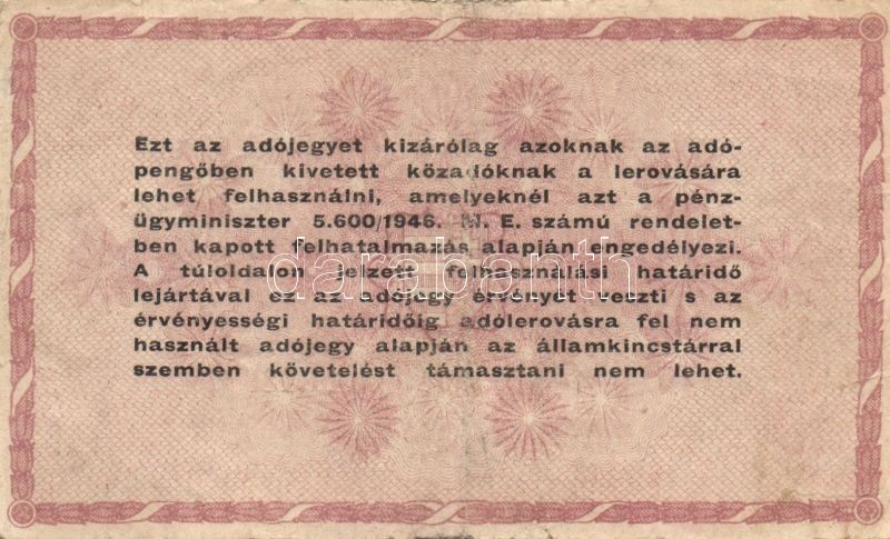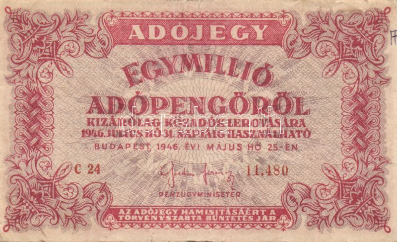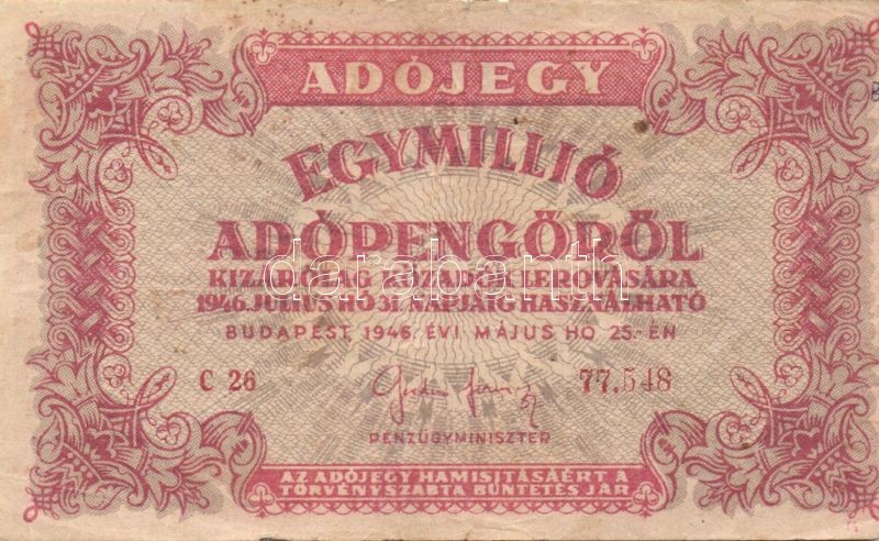 Beschreibung: 1946. 1000000AP ötjegyű sorszám, Vj, normál + fordított címerrel összesen 2klf típus T:II/III
