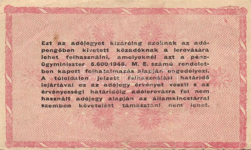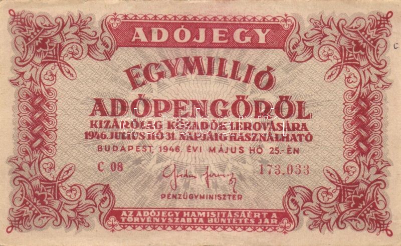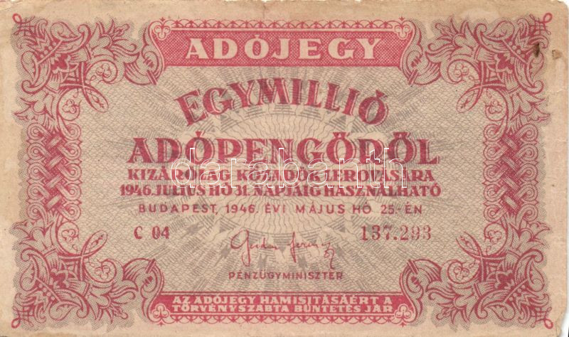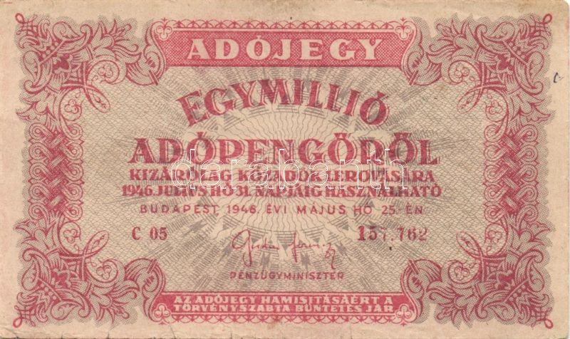 Beschreibung: 1946. 1000000AP(4x) hatjegyű sorszám, vj-lel T:II,II/III