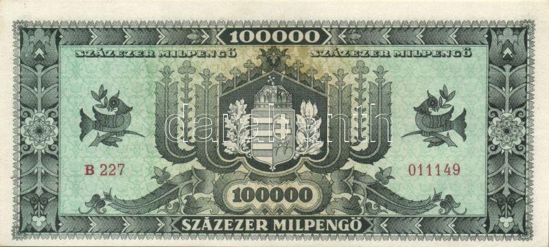 Beschreibung: 1946. 100000MP(3x) egymásutáni ill. egyugrású sorszámokkal T:I,I-