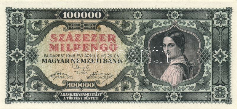 1946. 100000MP(3x) kevés ugrású sorszámokkal T:I https://www.darabanth.com/de/90-Fernauktion/90.0/Numismatik/~200025/1946-100000MP3x-keves-ugrasu-sorszamokkal-TI~II198518