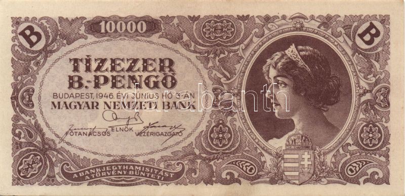 1946. 10000BP(6x), 100000BP(1x), 1000000BP(3x) összesen 10db T:II+ csa... https://www.darabanth.com/de/90-Fernauktion/90.0/Numismatik/~200025/1946-10000BP6x-100000BP1x-1000000BP3x-osszesen-10db-TIIplus-csak-egyszer-hajtva~II198571