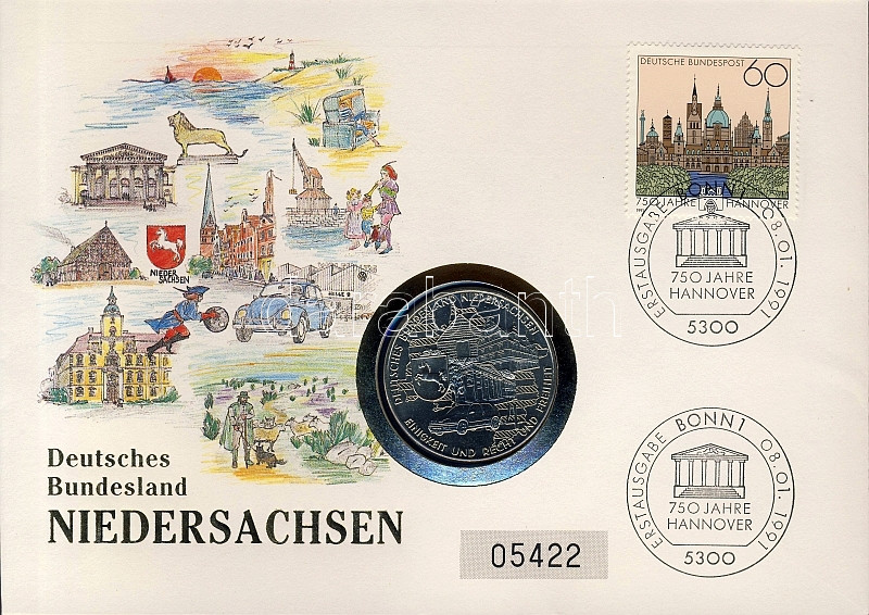 Beschreibung: NSZK 1990. "Alsó-Szászország" érmés, bélyeges borítékon, 2klf bélyeggel és elsőnapi bélyegzővel T:BU Ismertetőkkel!