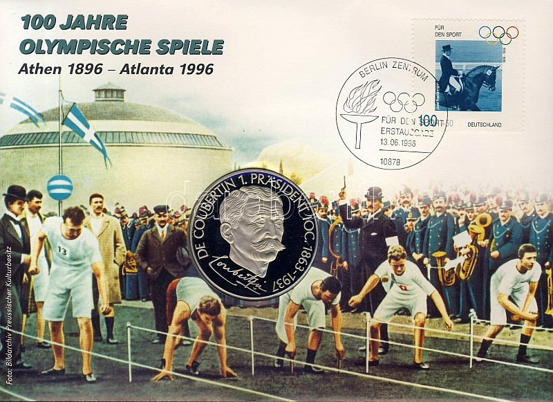 NSZK 1996. "Coubertin-100 éves az újkori olimpia" érmés, bélyeges borí... https://www.darabanth.com/de/90-Fernauktion/90.0/Numismatik/~200027/NSZK-1996-Coubertin-100-eves-az-ujkori-olimpia-ermes-belyeges-boritekon-TPP-Ismertetove~II198491