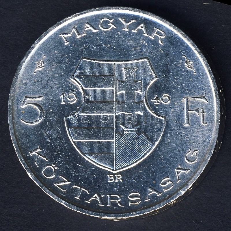 1946. 5Ft Ag "vastag Kossuth" T:2- https://www.darabanth.com/de/90-Fernauktion/90.0/Numismatik/~200033/1946-5Ft-Ag-vastag-Kossuth-T2-~II199335