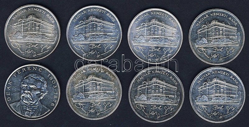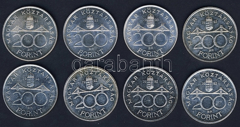1992-94. 200Ft Ag "MNB" (7x), "Deák" (1x) T:BU,2 https://www.darabanth.com/de/90-Fernauktion/90.0/Numismatik/~200033/1992-94-200Ft-Ag-MNB-7x-Deak-1x-TBU-2~II198899