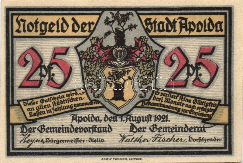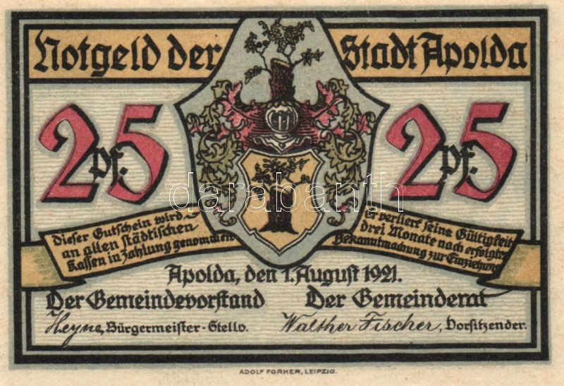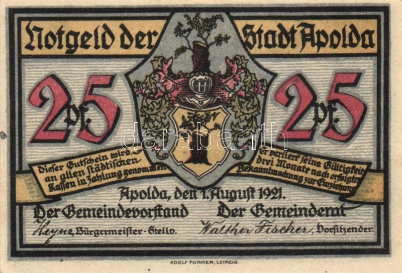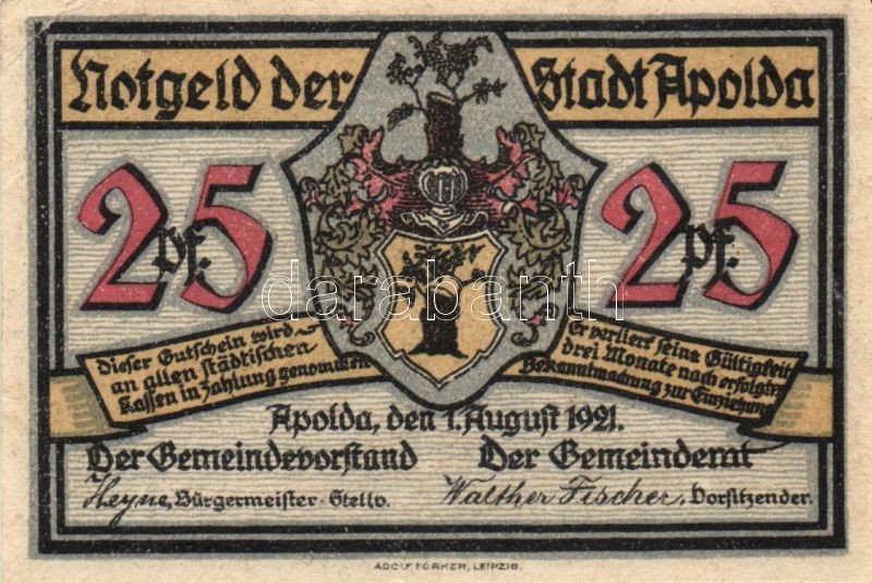 Német Birodalom/Weimari Köztársaság/ Apolda 1921. 25Pf(6x) 6klf teljes... https://www.darabanth.com/de/90-Fernauktion/90.0/Numismatik/~200037/Nemet-BirodalomWeimari-Koztarsasag-Apolda-1921-25Pf6x-6klf-teljes-sor-TI~II198543