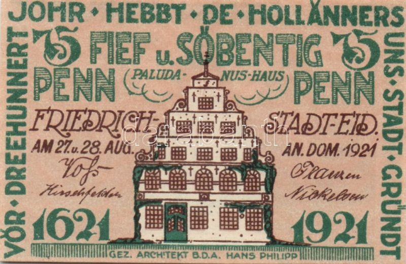 Beschreibung: Német Birodalom/Weimari Köztársaság/ Friedrichstadt 1921. 25Pf, 50Pf, 75Pf 3klf teljes sor T:I