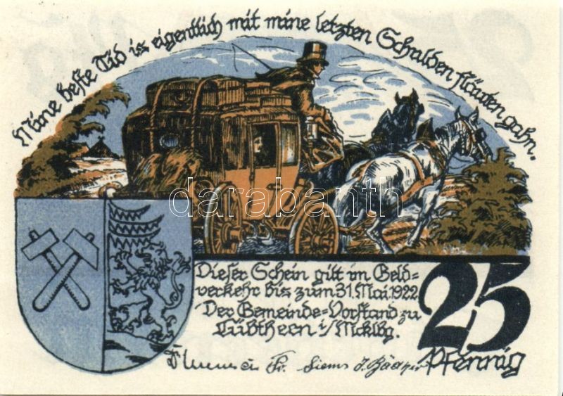 Német Birodalom/Weimari Köztársaság/ Lübtheen 1922. 10Pf, 25Pf, 50Pf 3... https://www.darabanth.com/de/90-Fernauktion/90.0/Numismatik/~200037/Nemet-BirodalomWeimari-Koztarsasag-Lubtheen-1922-10Pf-25Pf-50Pf-3klf-teljes-sor-TI~II199170