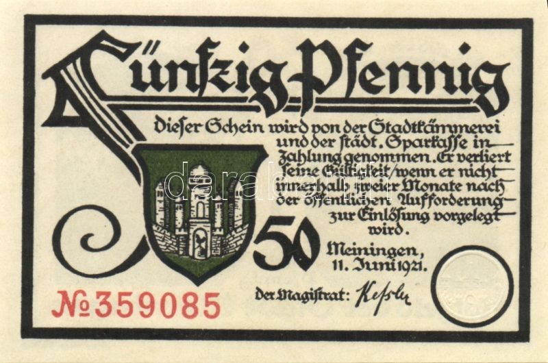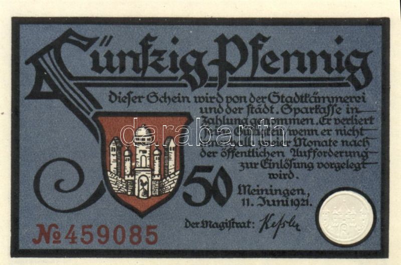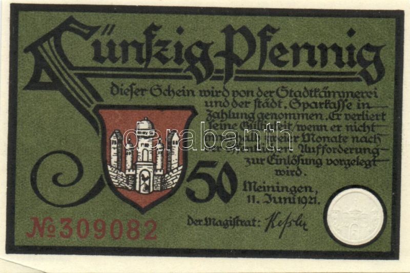 Német Birodalom/Weimari Köztársaság/ Meiningen 1921. 50Pf(4x) 4klf tel... https://www.darabanth.com/de/90-Fernauktion/90.0/Numismatik/~200037/Nemet-BirodalomWeimari-Koztarsasag-Meiningen-1921-50Pf4x-4klf-teljes-sor-TI~II198544
