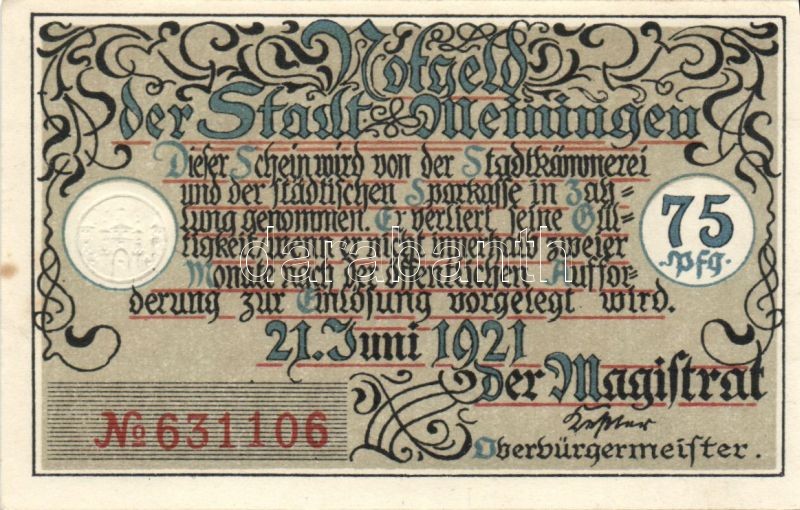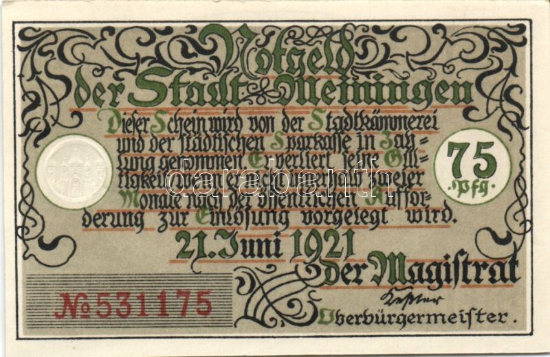 Német Birodalom/Weimari Köztársaság Meiningen 1921. 75Pf (4X) 4klf, te... https://www.darabanth.com/de/90-Fernauktion/90.0/Numismatik/~200037/Nemet-BirodalomWeimari-Koztarsasag-Meiningen-1921-75Pf-4X-4klf-teljes-sor-TI~II199565