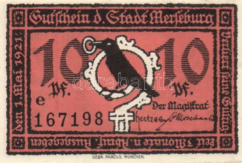 Beschreibung: Német Birodalom/Weimari Köztársaság Merseburg 1921. 5Pf + 10Pf + 20Pf + 25Pf + 50Pf (6X) összesen: 10klf teljes sor T:I