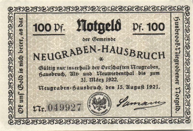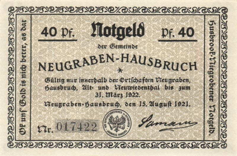 Német Birodalom/Weimari Köztársaság Neugraben 1921. 40Pf + 60Pf + 75Pf... https://www.darabanth.com/de/90-Fernauktion/90.0/Numismatik/~200037/Nemet-BirodalomWeimari-Koztarsasag-Neugraben-1921-40Pf-plus-60Pf-plus-75Pf-plus-100Pf-4klf--teljes-sor~II199580