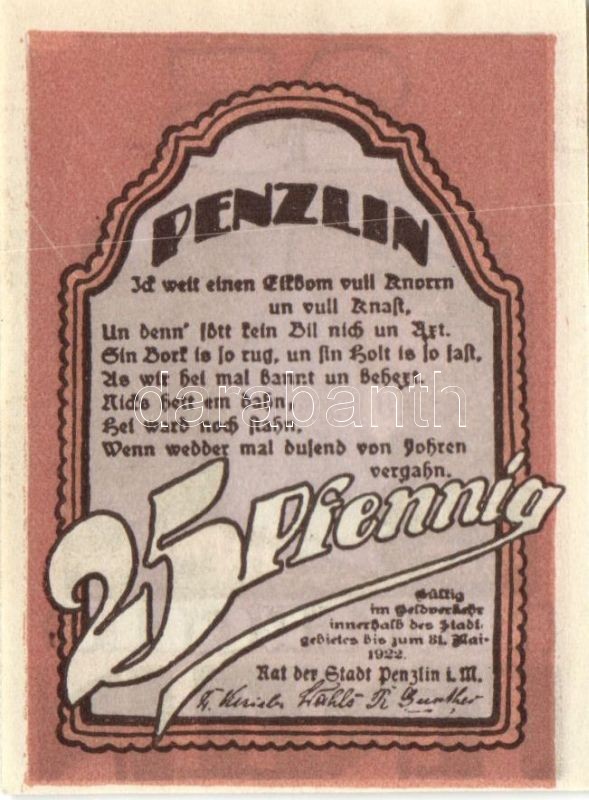 Német Birodalom/Weimari Köztársaság Penzlin 1922. 10Pf + 25Pf + 50Pf ... https://www.darabanth.com/de/90-Fernauktion/90.0/Numismatik/~200037/Nemet-BirodalomWeimari-Koztarsasag-Penzlin-1922-10Pf-plus-25Pf-plus-50Pf-3klf-teljes-sor-TI~II199164