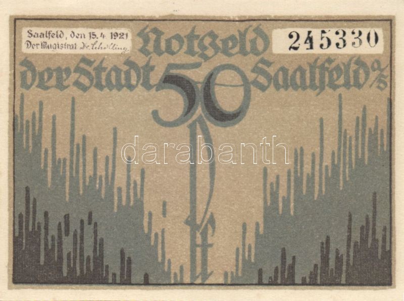Német Birodalom/Weimari Köztársaság/ Saalfeld 1921. 50Pf(3x) 3klf telj... https://www.darabanth.com/de/90-Fernauktion/90.0/Numismatik/~200037/Nemet-BirodalomWeimari-Koztarsasag-Saalfeld-1921-50Pf3x-3klf-teljes-sor-TI~II198549