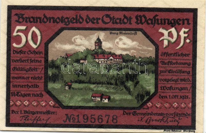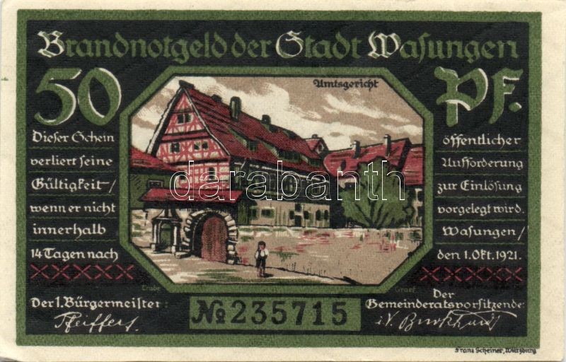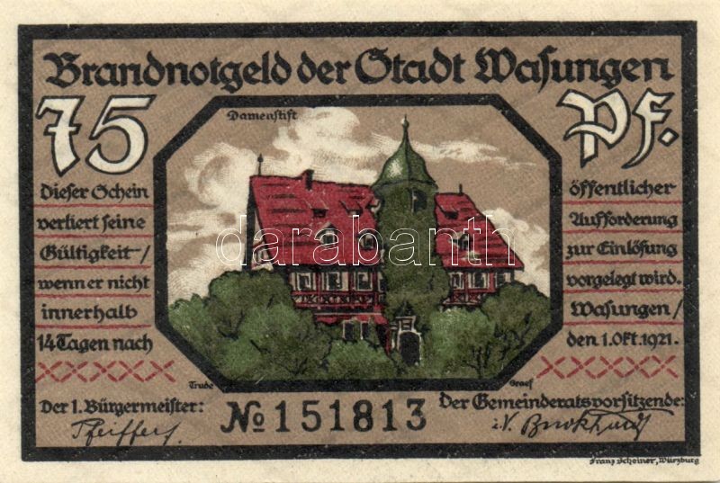 Német Birodalom/Weimari Köztársaság/ Wasungen 1921. 50Pf(4x), 75Pf(2x)... https://www.darabanth.com/de/90-Fernauktion/90.0/Numismatik/~200037/Nemet-BirodalomWeimari-Koztarsasag-Wasungen-1921-50Pf4x-75Pf2x-6klf-teljes-sor-TI~II198546