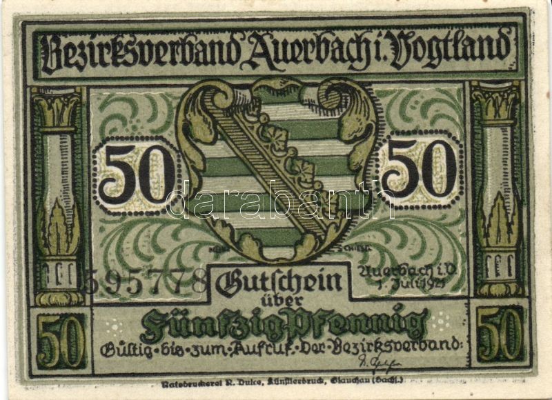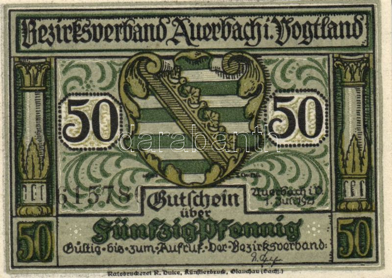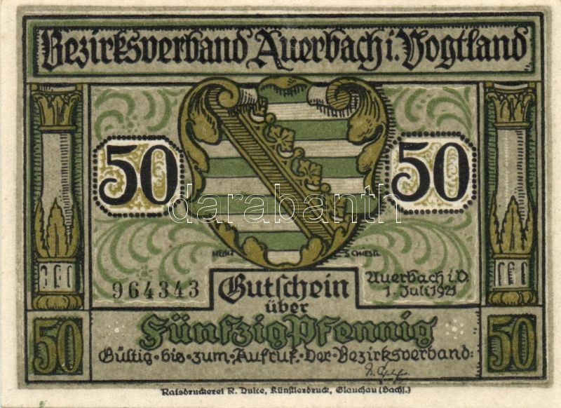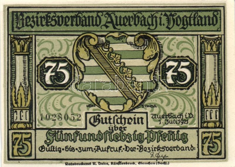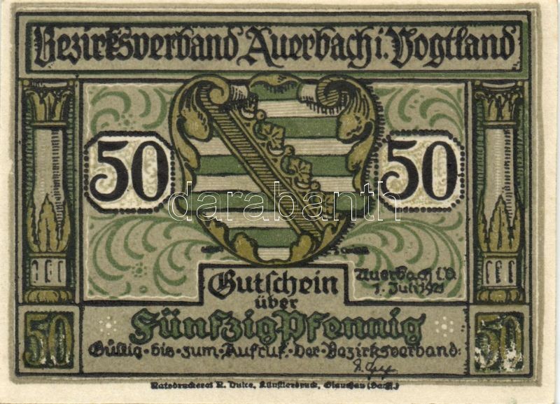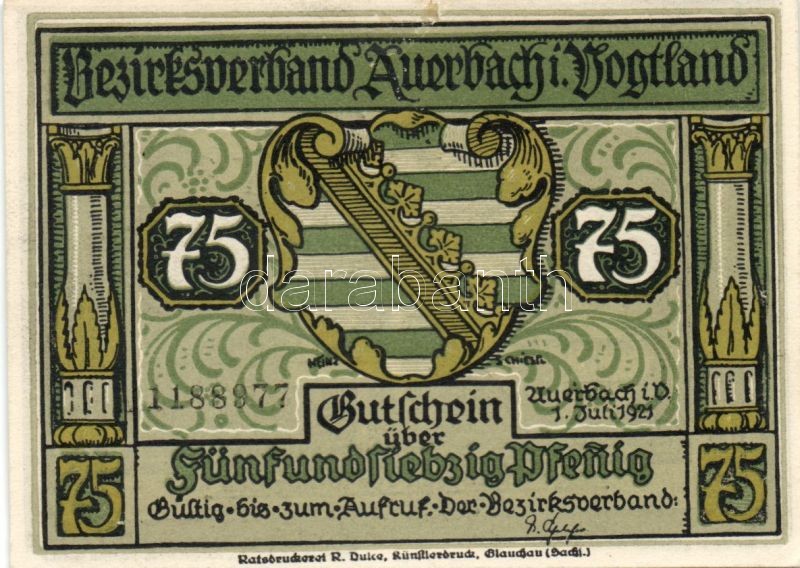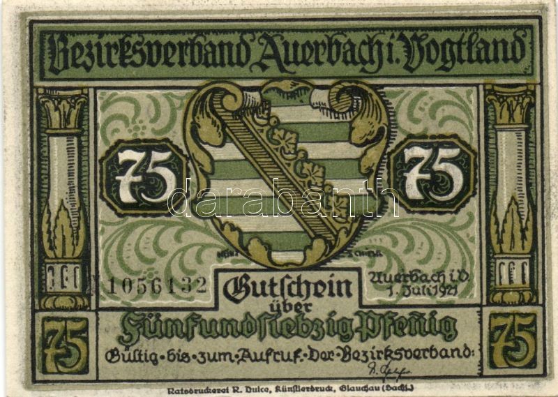 Német Birodalom/Weimari Köztársaság/Auerbach 1921. 50Pf 3klf + 75Pf 3k... https://www.darabanth.com/de/90-Fernauktion/90.0/Numismatik/~200037/Nemet-BirodalomWeimari-KoztarsasagAuerbach-1921-50Pf-3klf-plus-75Pf-3klf-teljes-sor-TI~II198000