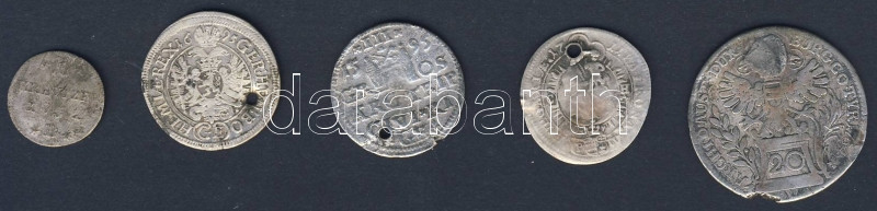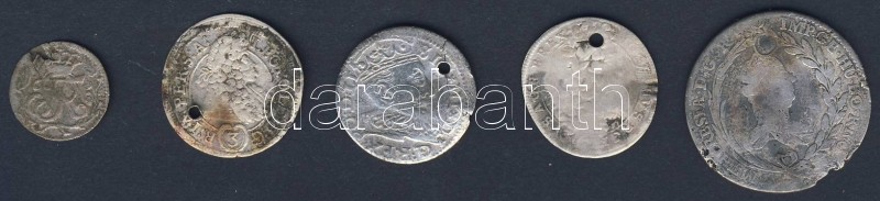 Beschreibung: 1500-1700-as évek osztrák, lengyel és német ezüstpénzek, 5db T:3/4 sérültek